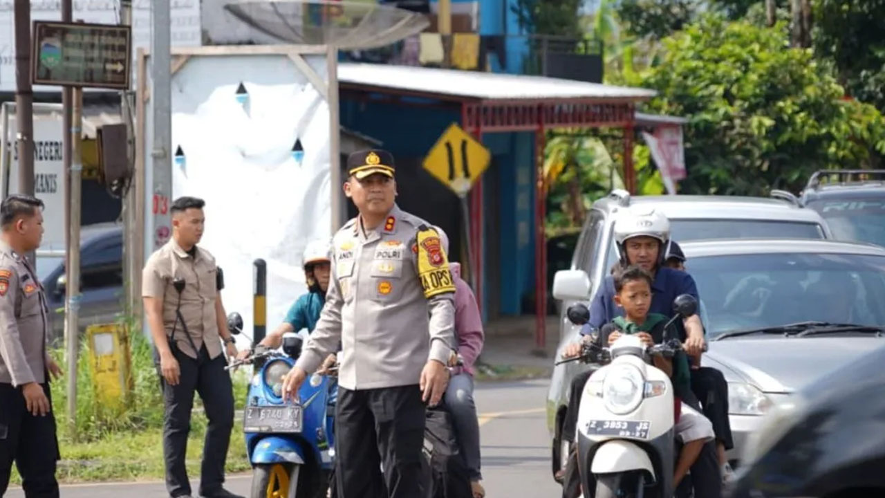Untuk mengurai kepadatan, petugas kepolisian melakukan pengaturan lalu lintas di sepanjang jalur Gentong.