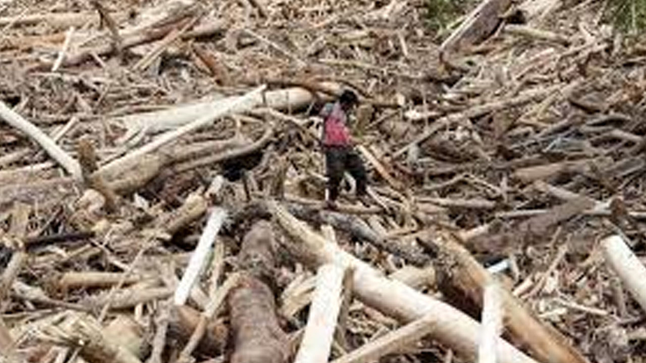 Dampak Deforestasi: Hilangnya fungsi hidrologis hutan sebagai penyerap air membuat debit air hujan langsung mengalir deras ke dataran rendah, membawa material kayu dan memperparah dampak banjir.